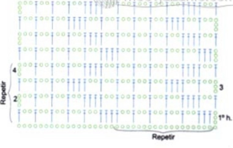 - 1 р.: 3 с. с н., 2 в. п., 3 с. с н., 2 в. п., 1 с. с н., 2 в. п., 3 с. с н., 2 в. п., 3 с. с н., 1 в. п., 3 с. с н., 2 в. п., 3 с. с н., 2 в. п., 1 с. с н.