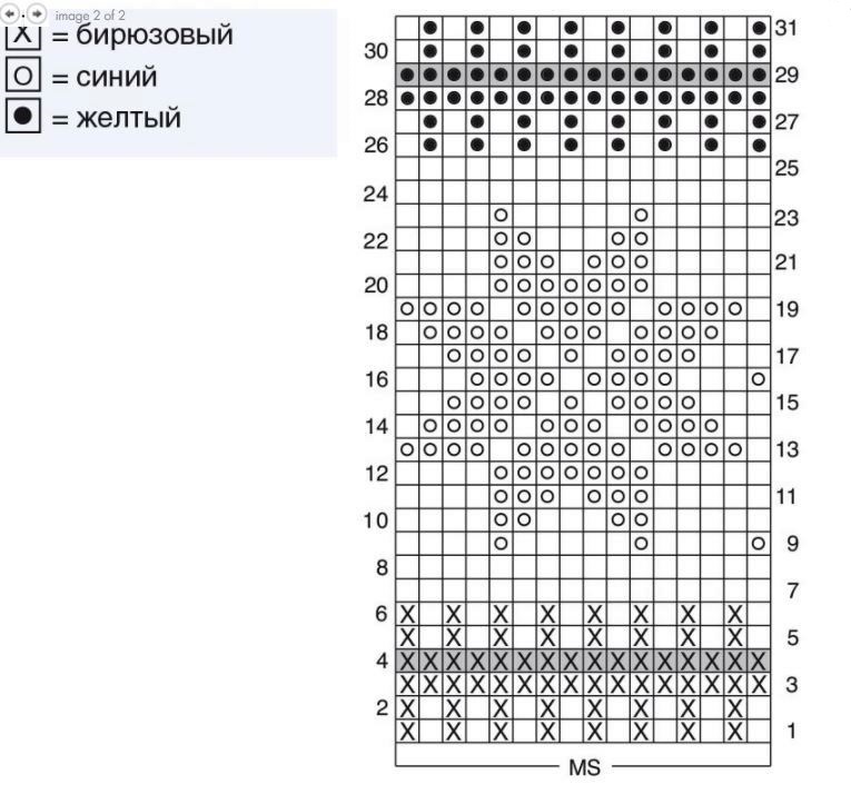 Для возврата на 1-ый цвет, последний стлб цв. No2 вывязываем цветом No1.