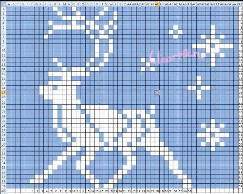 На схеме показаны все ряды узора. Горизонтальный Р равен 31 птл, вертикальный – 31 птл.