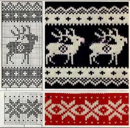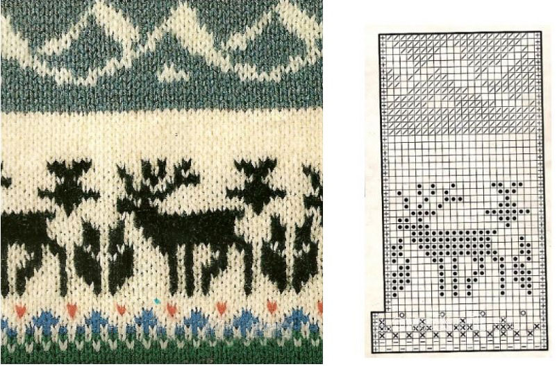 Норвежские узоры с животными и растениями, вязанные спицами со схемами