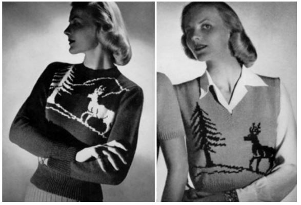 В основном в сюжетах присутствуют олени и елочки, иногда добавляются изображения людей.