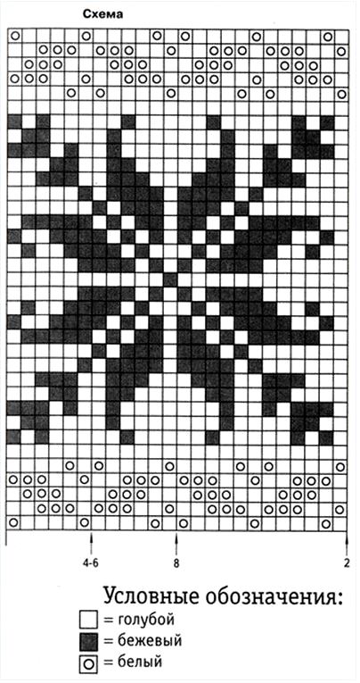 Вязание выполняем по схеме, на ней показан вид узора с лицевой стороны.
