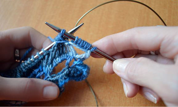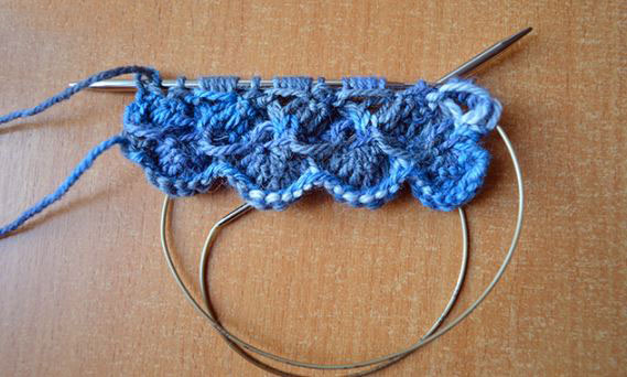 Далее выполняем вязание спицами, повторяя с 1р. по 8р.