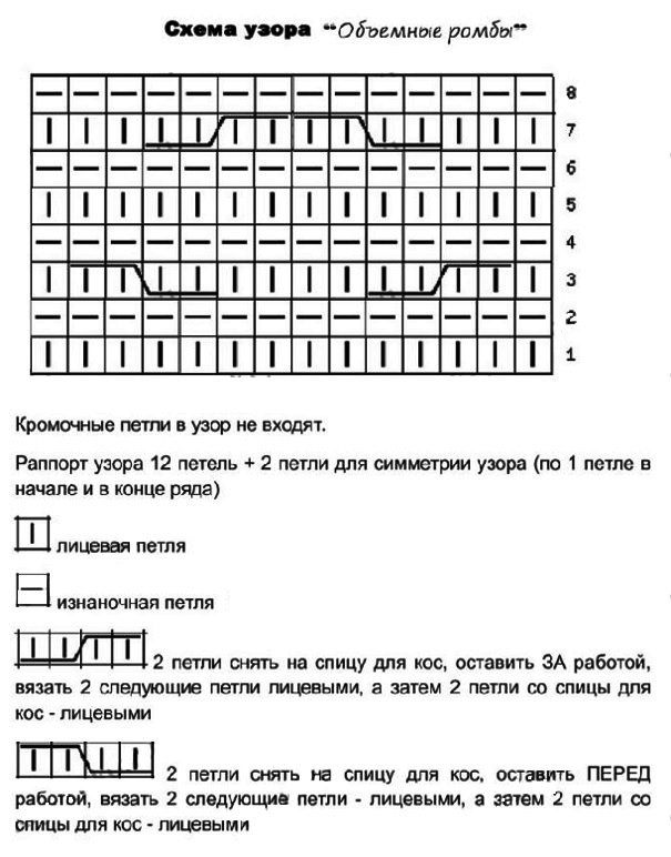 Объемный узор спицами «Ромбы»