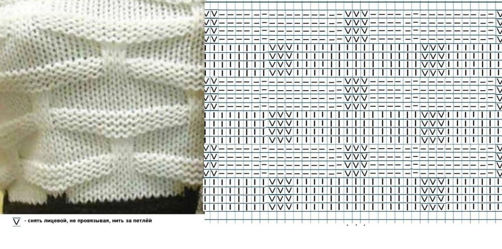 - 12 р.: продолжаем вязание – провязываем по рисунку, при этом н. вывязываем лиц. п. без А, хватая н. сзади (скрещ. лиц. п.).