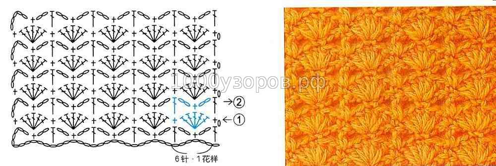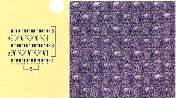 Он вяжется гораздо проще, поскольку здесь не нужно высчитывать петли, все шишечки мы провязываем через 1 в. п. между шишечками предыдущ. р.