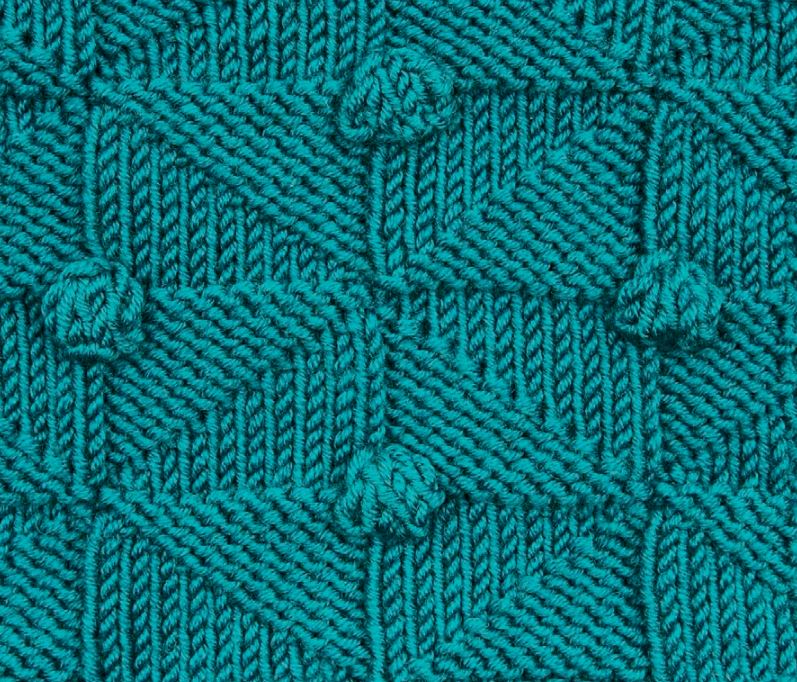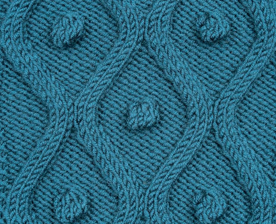 Оригинальность этого рисунка в том, что рельефные узорчики спицами связаны отдельно, а шишечки вывязываются и пришиваются потом.