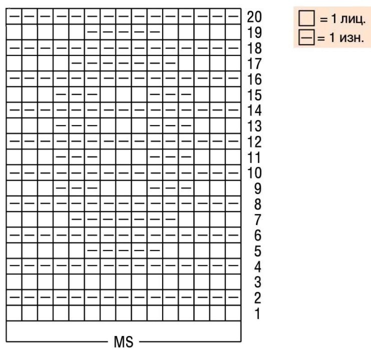Начинаем с 1кр., затем – раппорт, 1 кр. По высоте выполняем с 1р. по 20р.