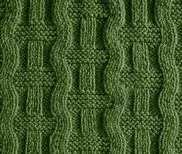 Интересное решение из вертикальных волн и столбиков из лицевых петелек на изнаночном фоне.