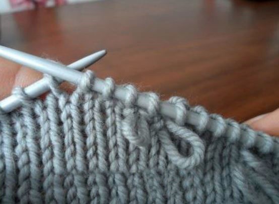- 9р.: 3и., *обернуть дважды 7 птл (см. фото в этой статье выше), 3 лицев., 1и., 3 лицев., 5и.* – между *-* делаем до остатка 3-х птл, 3 из.;