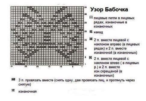 Этот рельефный узор лучше выполнять пряжей средней толщины или толстой. Узор бабочка спицами отлично смотрится на кофточках, шапках, кардиганах.