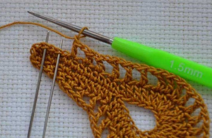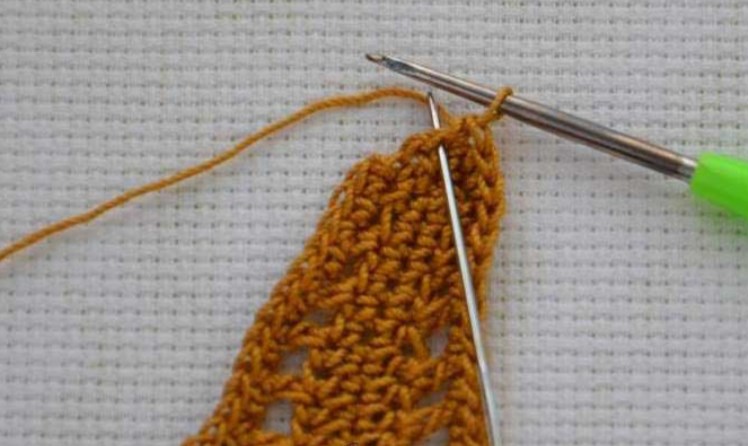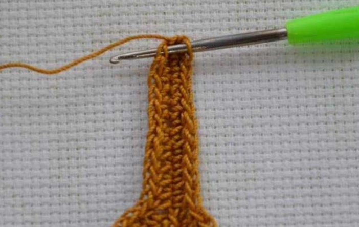 От иголочки до иголочки вяжем по 2 с. с 2 н. в каждую петельку.