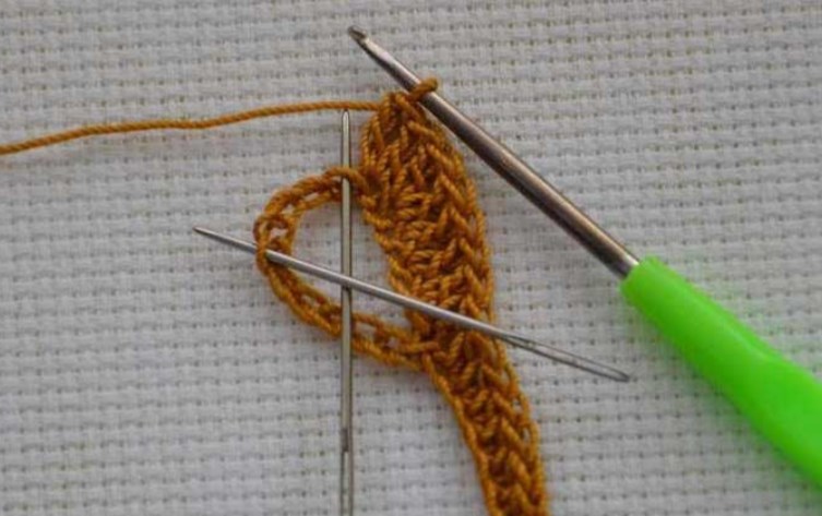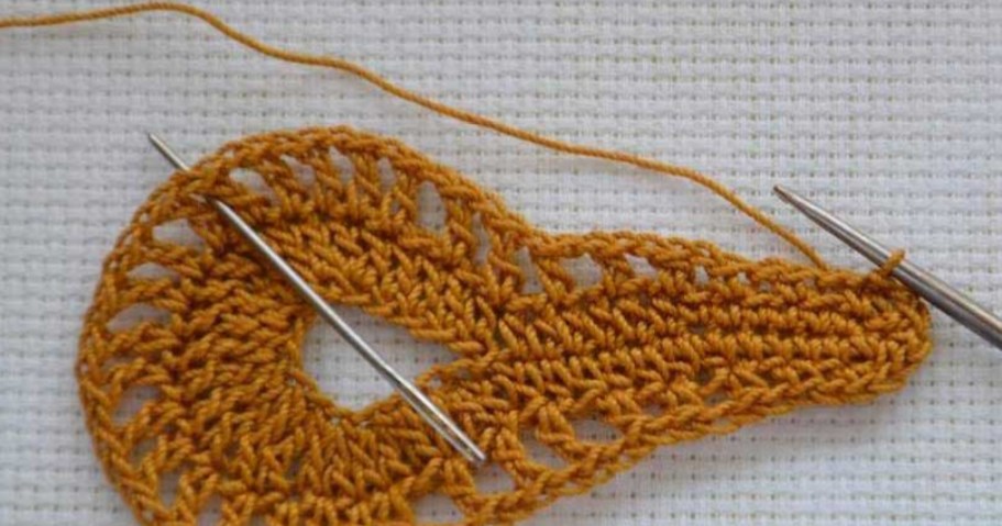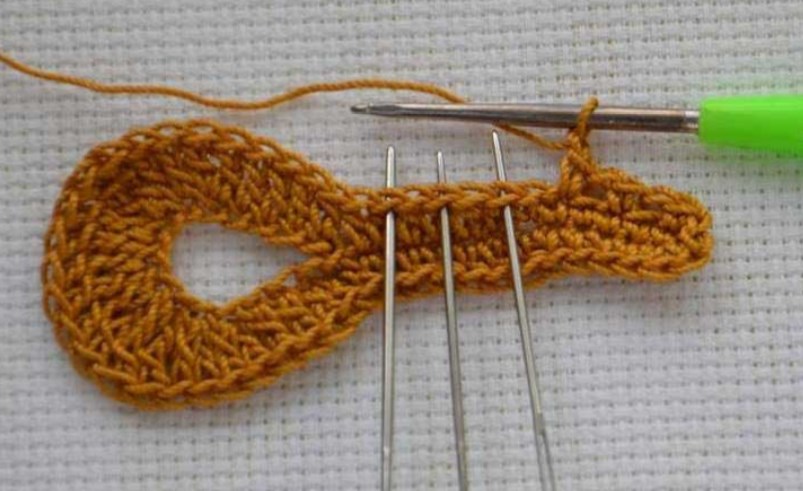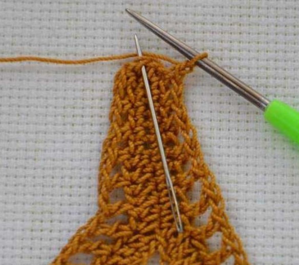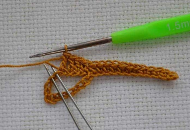 От одной иголки ко второй – по 1 с. с н. в каждую из петелек = 8 полустолбиков.