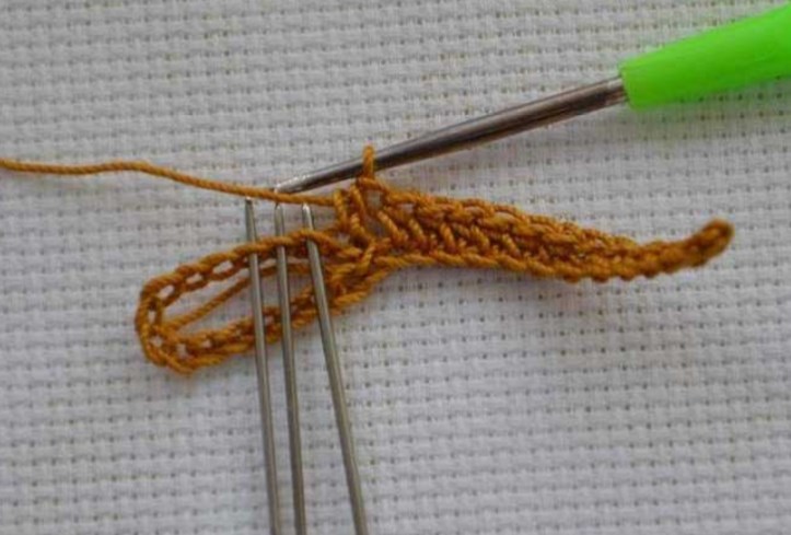Теперь нужно набрать 4 воздушные петли подъема, и далее из каждой петли вывязываем с. с н. с 1 в. п. между ними. Вот что должно у нас получиться: