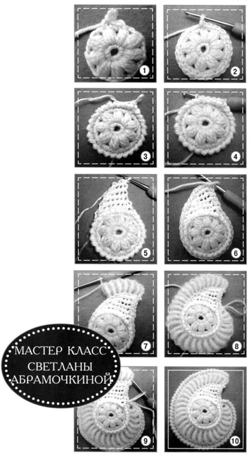 Набираем 6 в. п., соединяем их в колечко с помощью соединительной петли и обвязываем 8 с. без н.