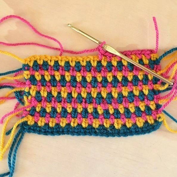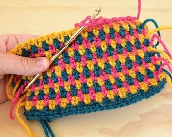 Далее продолжаем по этому описанию, чередуя цвета пряжи.