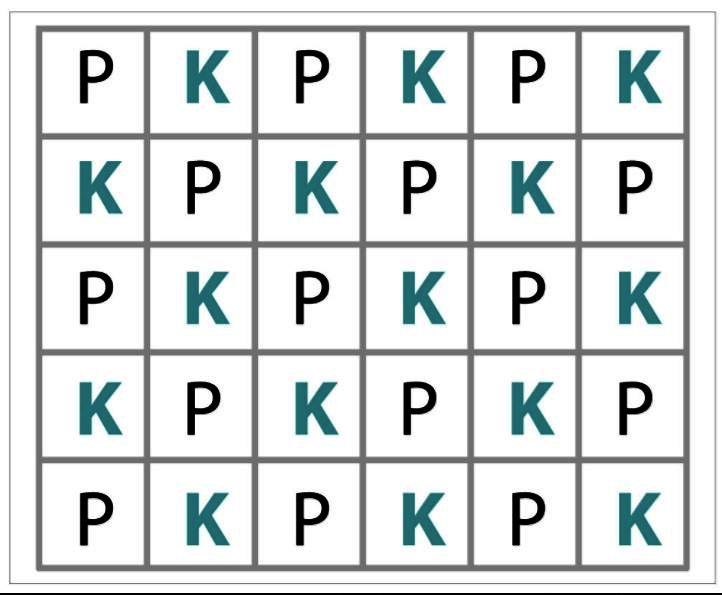 На первый взгляд схемы очень похожи. Но в схеме жемчужного узорчика показаны все ряды, а в схеме «Рис» – только лицевые. Для мелкого жемчужного узорчика смещение петелек делается в каждом ряду, а для рисового – через рядок. Все изнаночные ряды во втором случае выполняются по видимому рисуночку. В результате смещение лицевых и изнаночных петель для рисового узорчика происходит через два ряда.