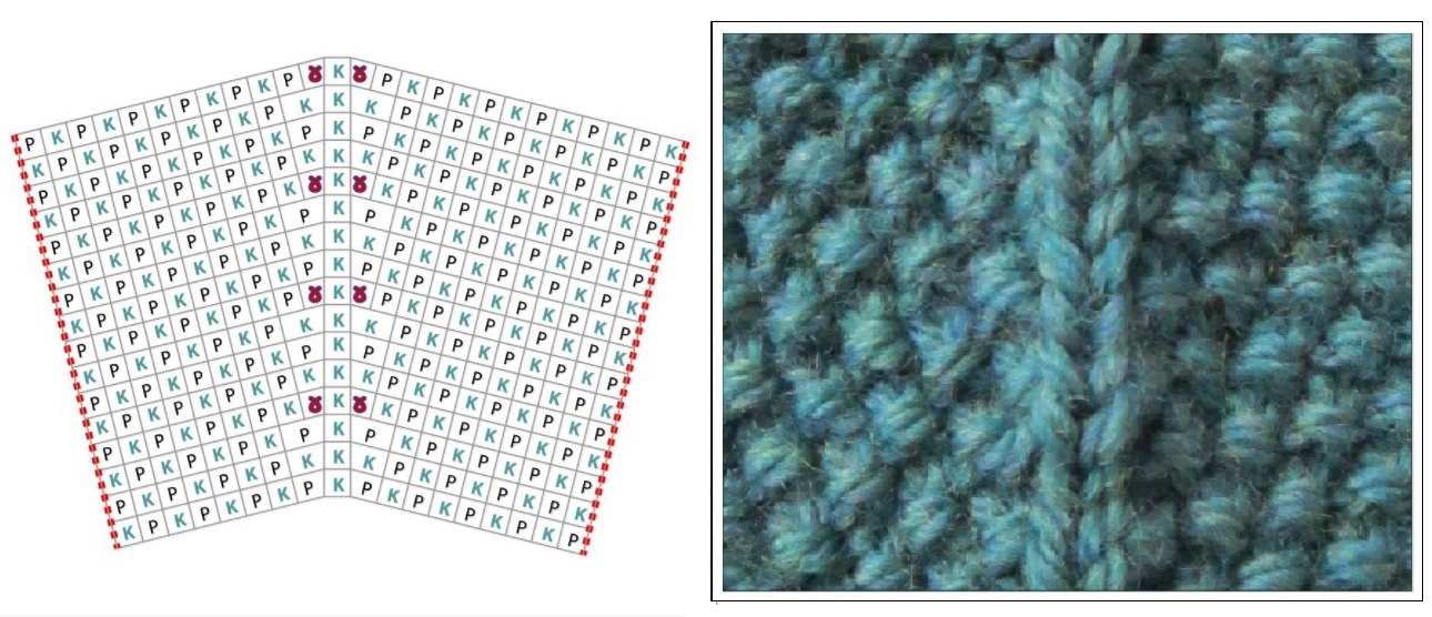Выполнение узора рис для прямого вязания