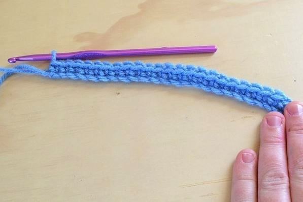 Во 2-ую ВП от крючка провязываем стлб б/н, далее выполняем стлб б/н. Переходим на второй цвет ниток и выполняем повторы фрагмента *стлб без/н, в/п, пропуск петельки пред-щего р., стлб без/н, в/п, пропуск птл*.
