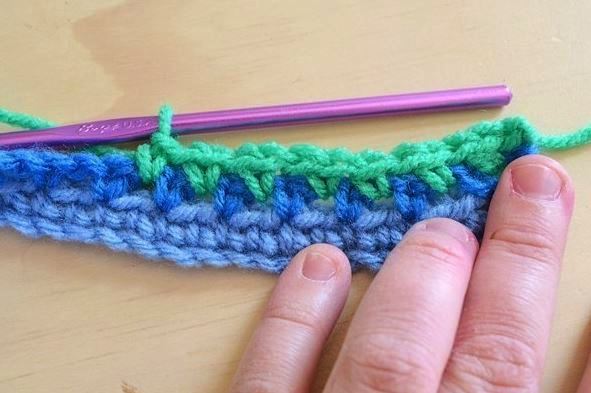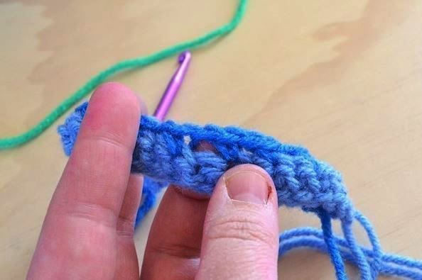 Пять меняем цвет пряжи и продолжаем: *в/п, стлб без/н, в/п*, соед. стлб.