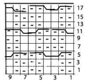- 17 р.: *12 л. п., 2 п. вм. л., **2 н., 1 пр., 2 п. вм. л., от ** х 2, 2 н., 1 пр., 12 л. п., от * до *.