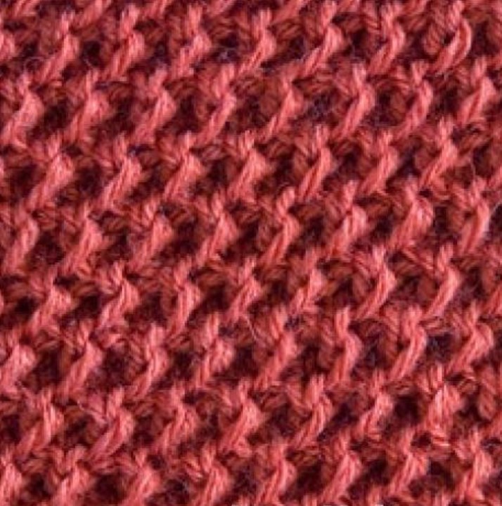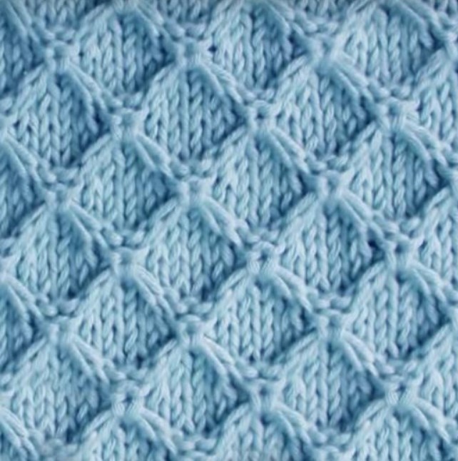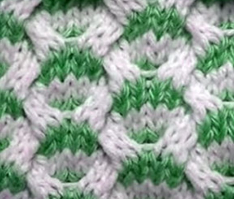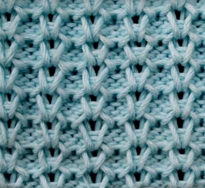 Число петель должно быть кратно 2, рисунок формируется на изнаночной стороне полотна.