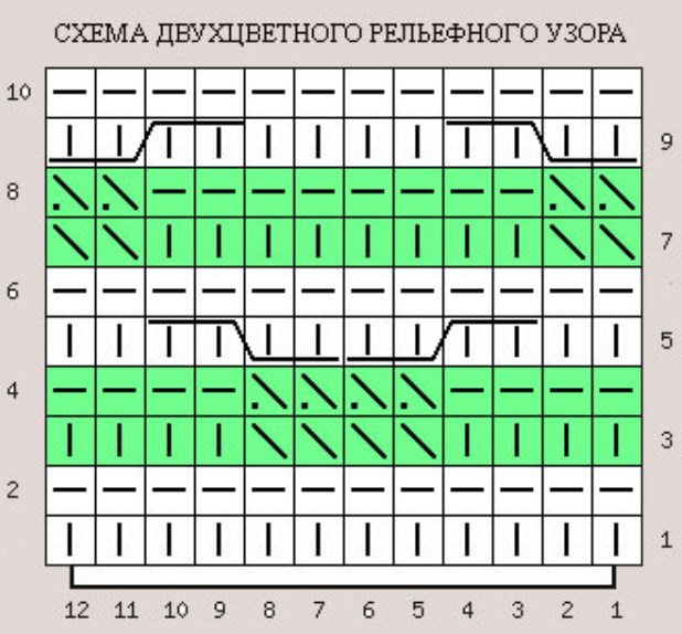 - 1 р.: *10 л. п., 1 пр., **2 н., 1 пр., 2 п. вм. л., от ** повторяем х 3, 2 н., 2 п. вм. л., 10 л. п., повторяем от *.