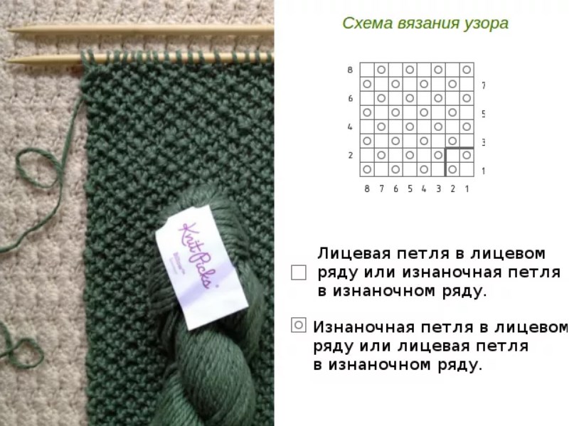 Мелкая жемчужная вязка спицами: подробная схема работы