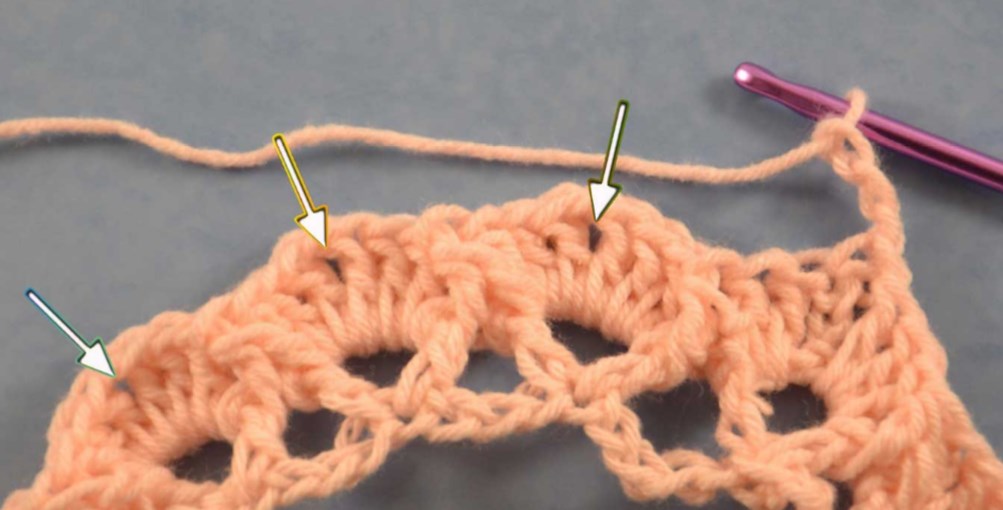 Набираем 1 в. п. п., 1 с. без н. в 3-ю в. п. п., 3 в. п., в эту арку 2 с. с н.