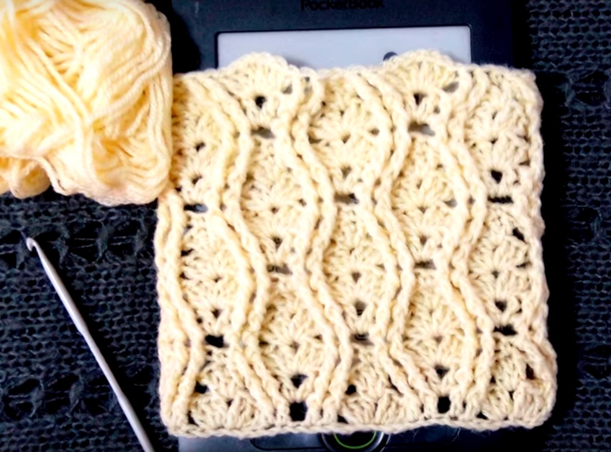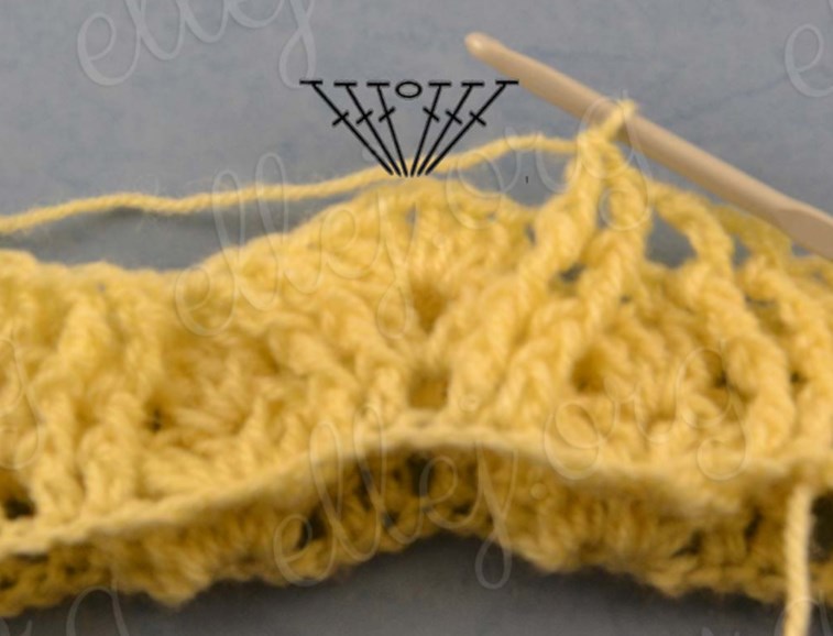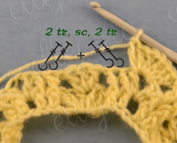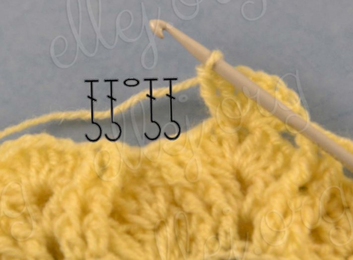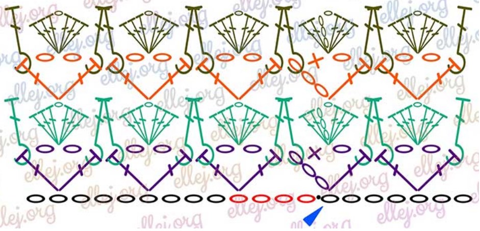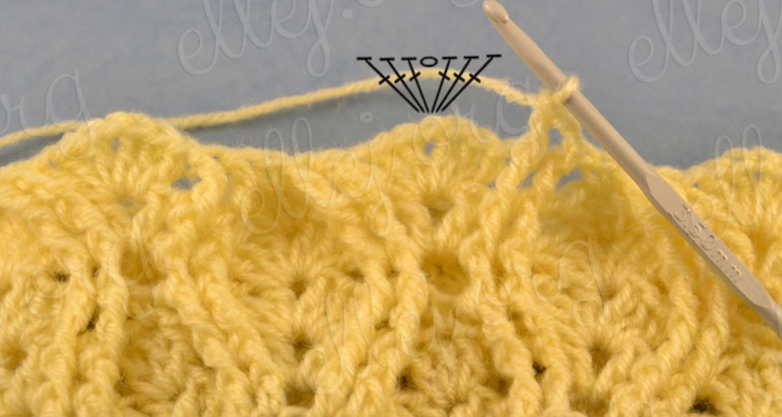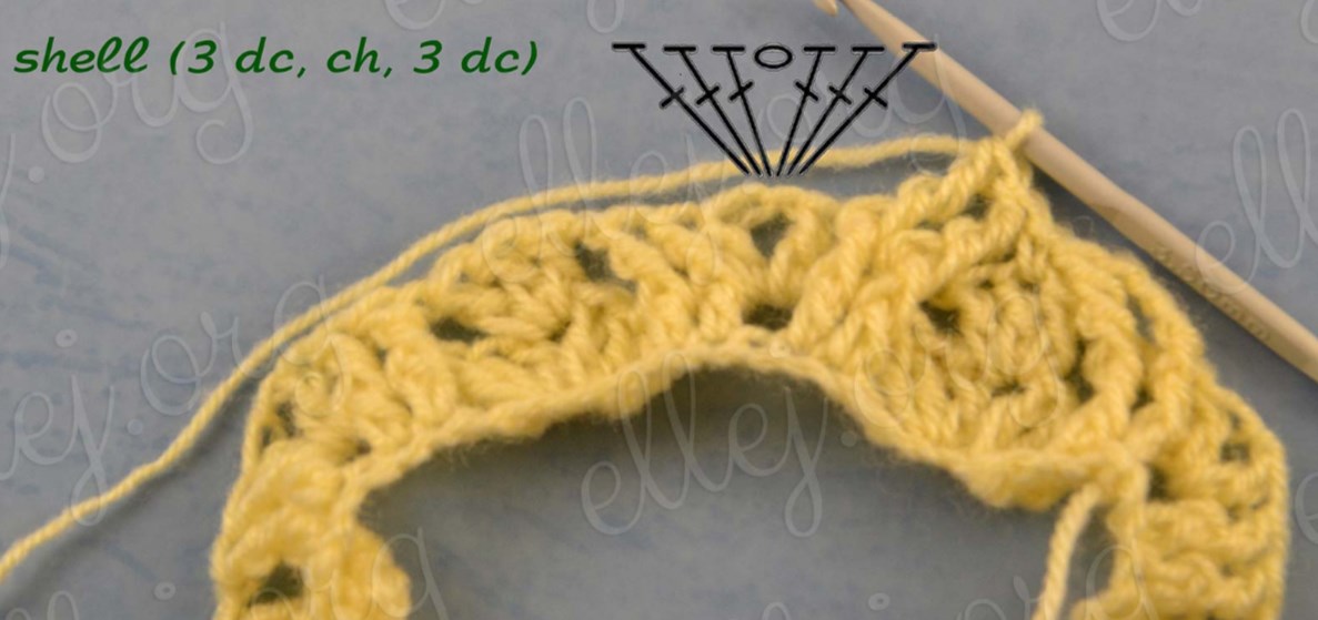 Сюда выполняем ракушечку и повторяем узор с начала.