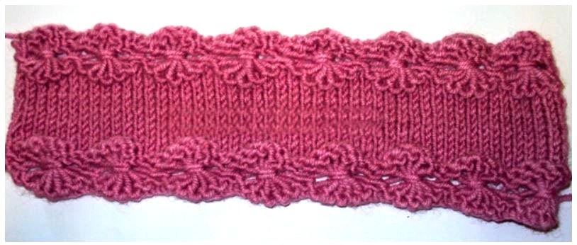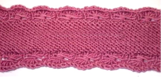 Таким узором по схеме для вязания спицами можно подчеркнуть край изделия. Также такие узоры, вывязанные на полотне лицевой глади, украсят кофточку, снуд, многие интерьерные вещи.