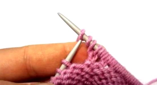 - 1р.: *2 изнаночн., 1 лицев., 2 изнаночн., из 1п. провязываем 5 п. (= 1л.+ 1н.+ 1л.+ 1н.+ 1л.)* – от * и до * делаем весь р.;