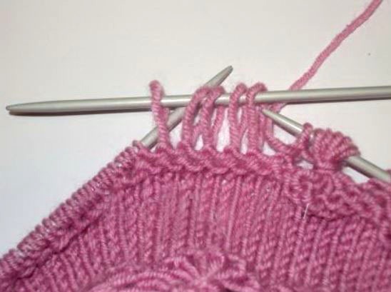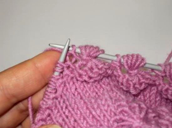 Шишечки-ежевички располагаются со смещением, по шахматке. Дальнейшее вязание выполняем, повторяя с 1-го р. по 4-ый р.