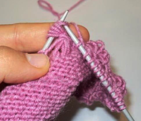- 2р.: 2 лицев., *1 изнаночн., 9 лицев.* – от * и до * делаем до 2-х крайних птл, 2 лицев.;