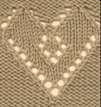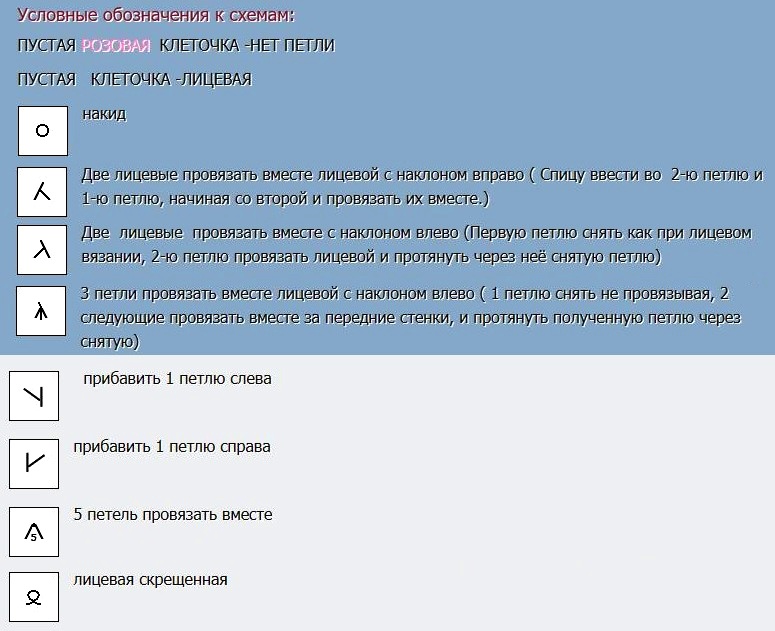 Самые простые теневые узоры спицами выполняются по схемам, в которых показаны только лицевые р. В них л/п провязывается рисунок, а фон узора связан и/п.