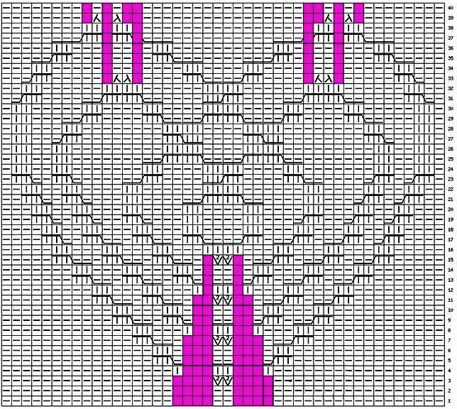 На сх. есть только ЛР, в ИР вяжем по рисунку, провязывая накиды изнаночными.