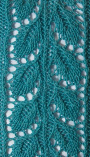 А теперь рассмотрим образцы вывязывания спицами узоров с листьями.