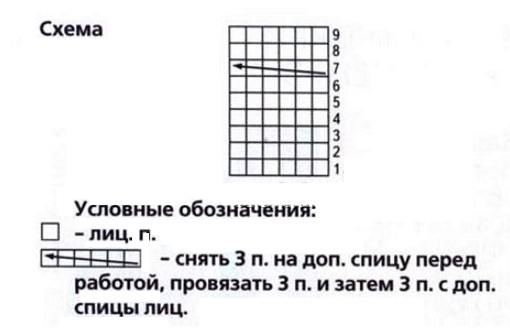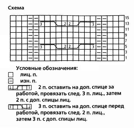 Вязание выполняем по схеме. Фоном косички служит изнаночная гладь.