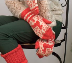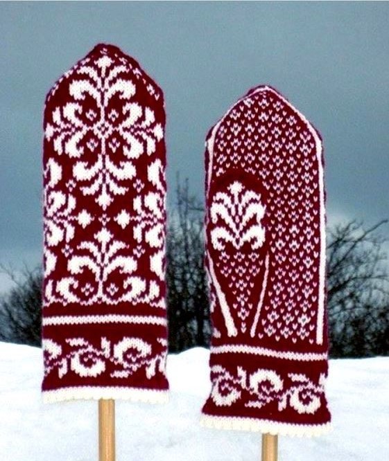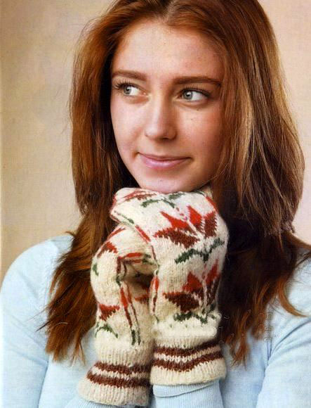 В таком орнаменте используются самые разные сюжеты – от цветов, подходящих для женских рукавичек до смешных котиков для детских варежек.
