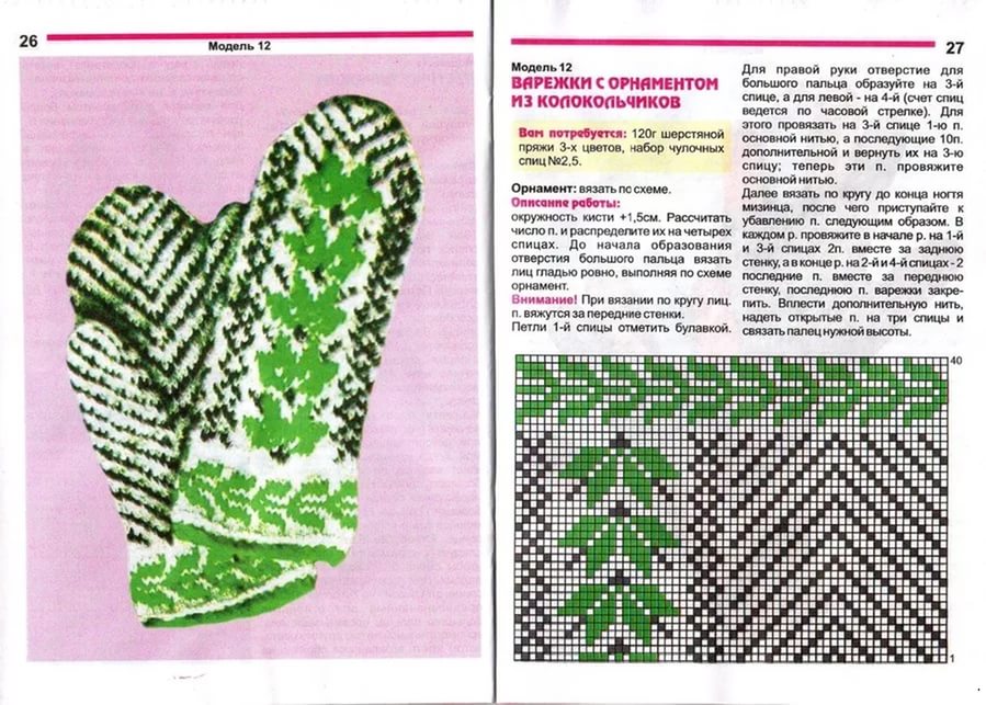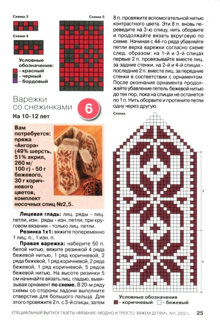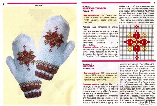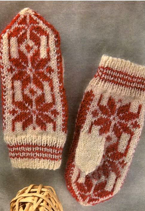В жаккардовой вязальной технике можно выполнять двухцветные или многоцветные схемы. Особенности вязания этих узоров мы подробно рассматривать не будем, такая информация есть на нашем сайте. Просто еще раз подчеркнем, если для вязания рукавичек используются несколько цветов пряжи, следите, чтобы не было длинных протяжек по изнанке. И, конечно, нитки должны быть одинакового состава, иначе при стирке их усадка будет неравномерной.