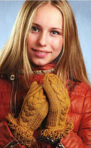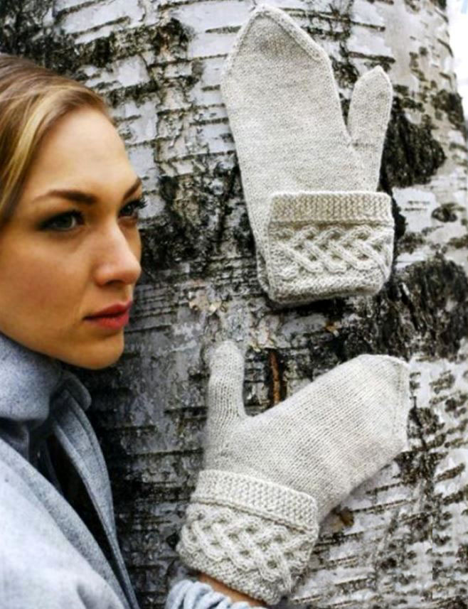 Посмотрите еще несколько схем для вязки варежек с косами.
