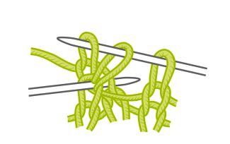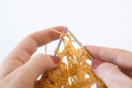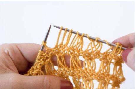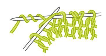 Для получения длинной птл нить на спицу накручиваем трижды. Спицу вращаем по часовой стрелочке. Затем накрученные витки сбрасываем, получив длинную птл.