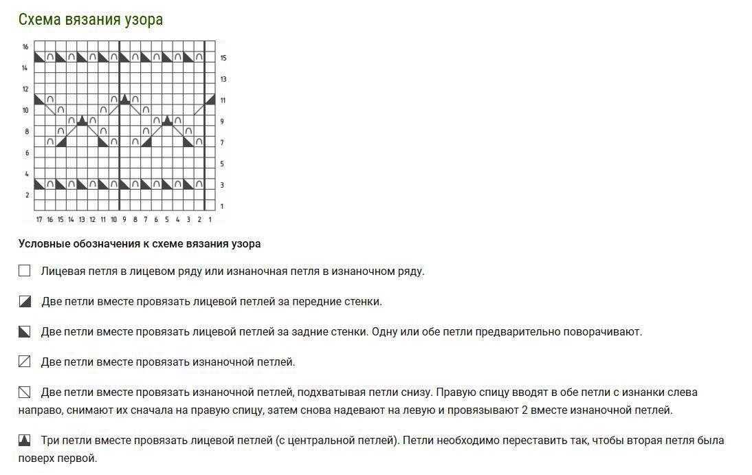 - 17р.: *1 лицев., 1 изнаночн., 3 лицев., 1 изнаночн., 4 лицев.*;