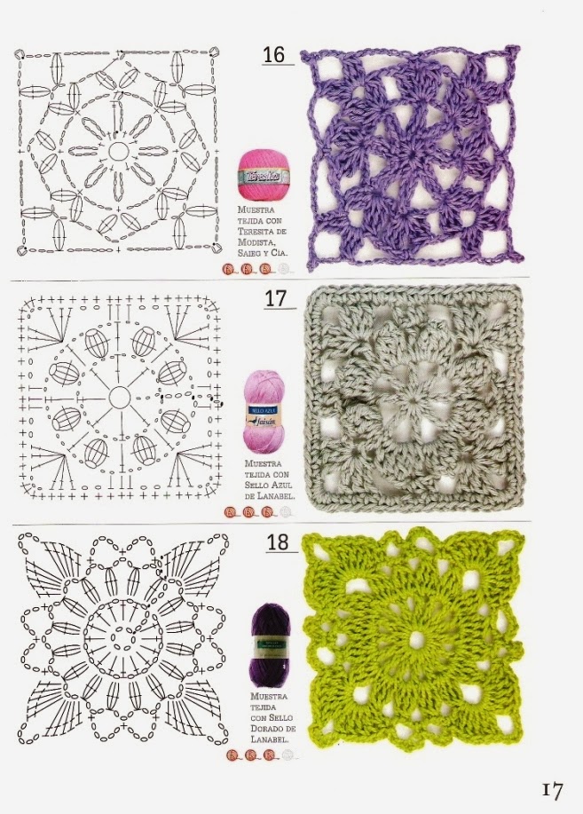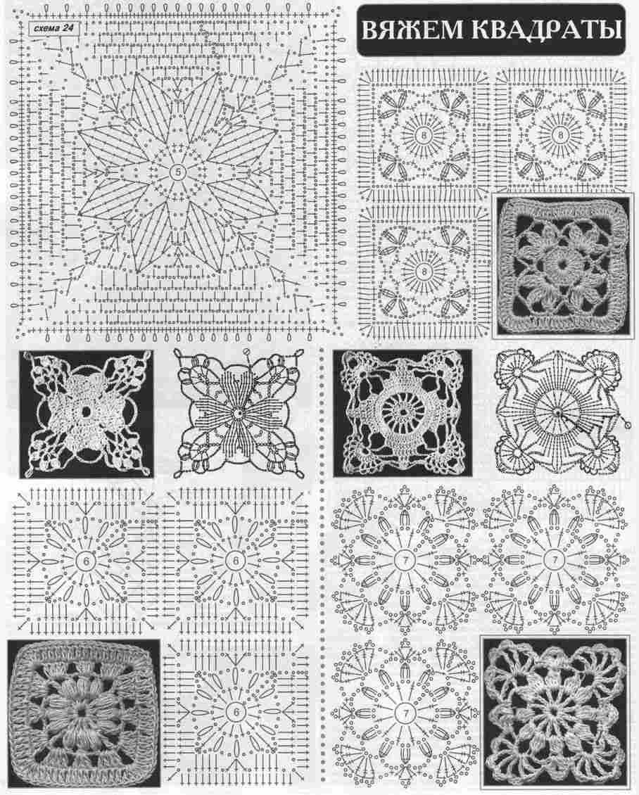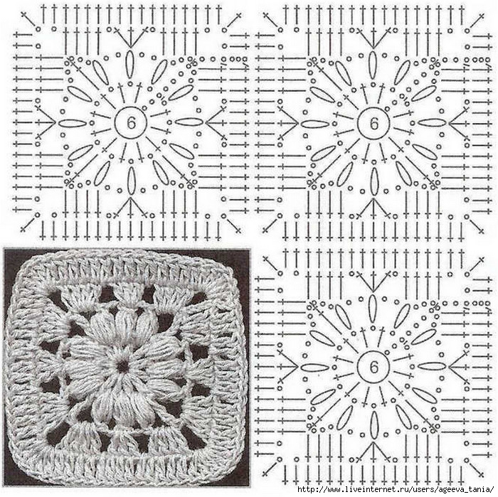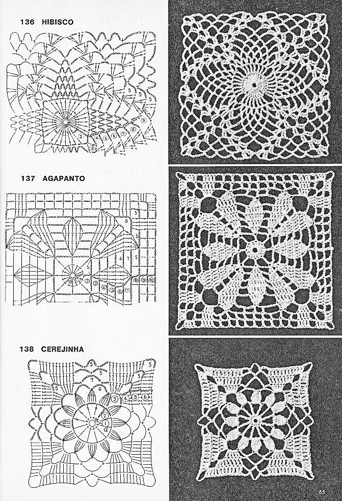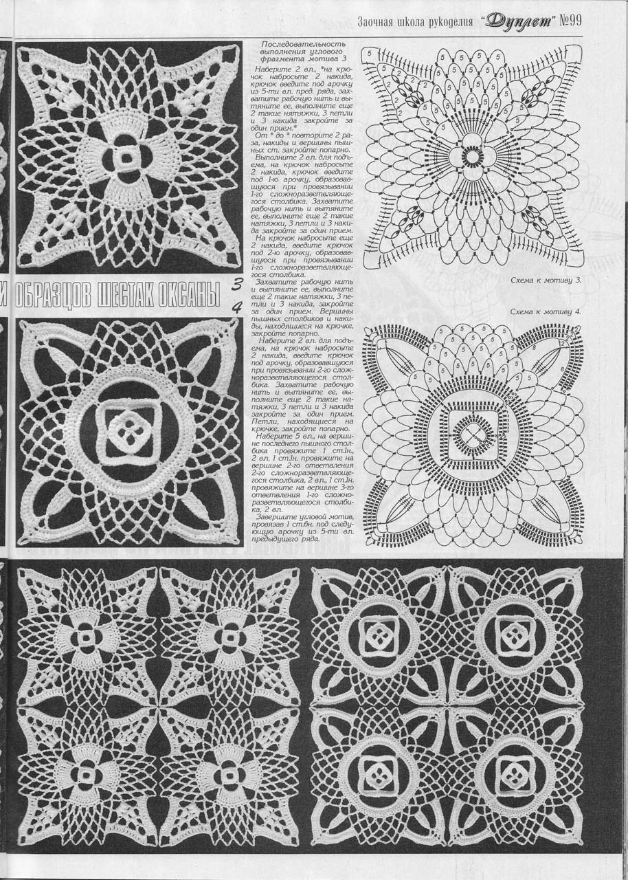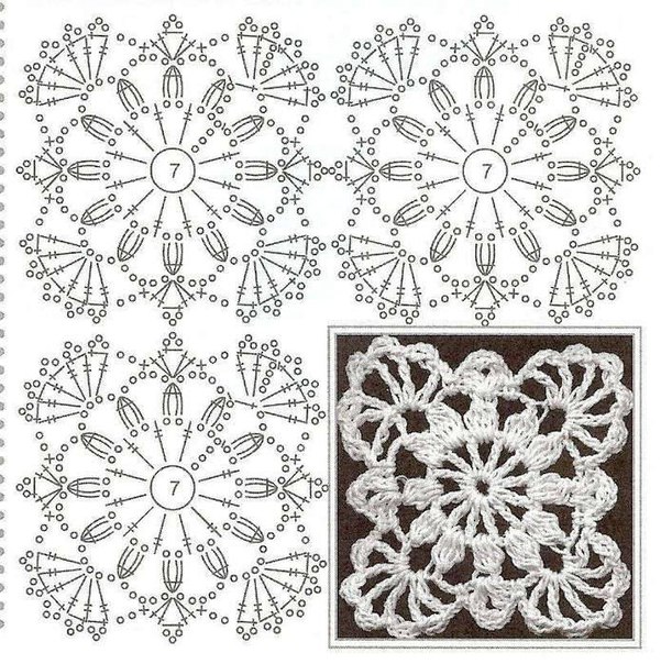 Продолжаем безотрывное вязание мотивов крючком согласно этих схем до нужной длины полотна.