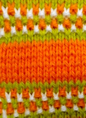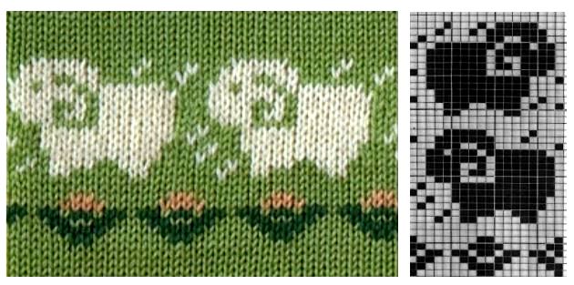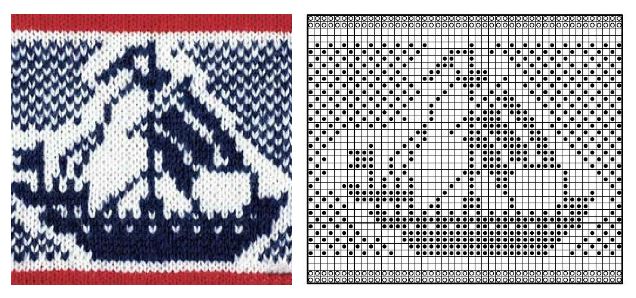 На этом примере рассмотрим, как связать жаккардовый узор без протяжек на изнанке.