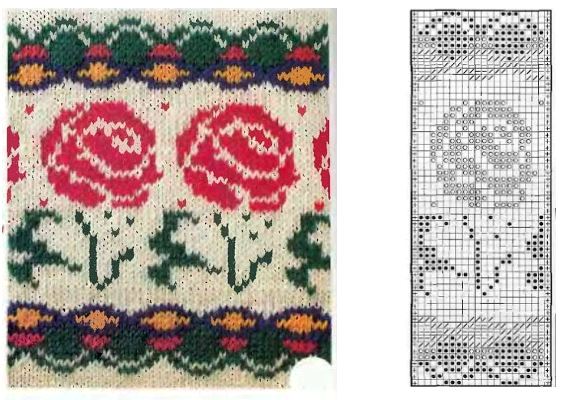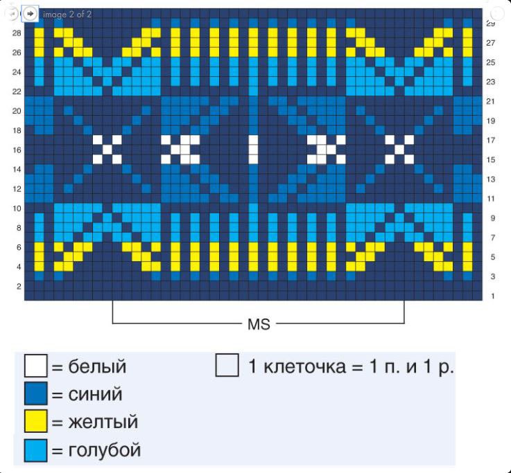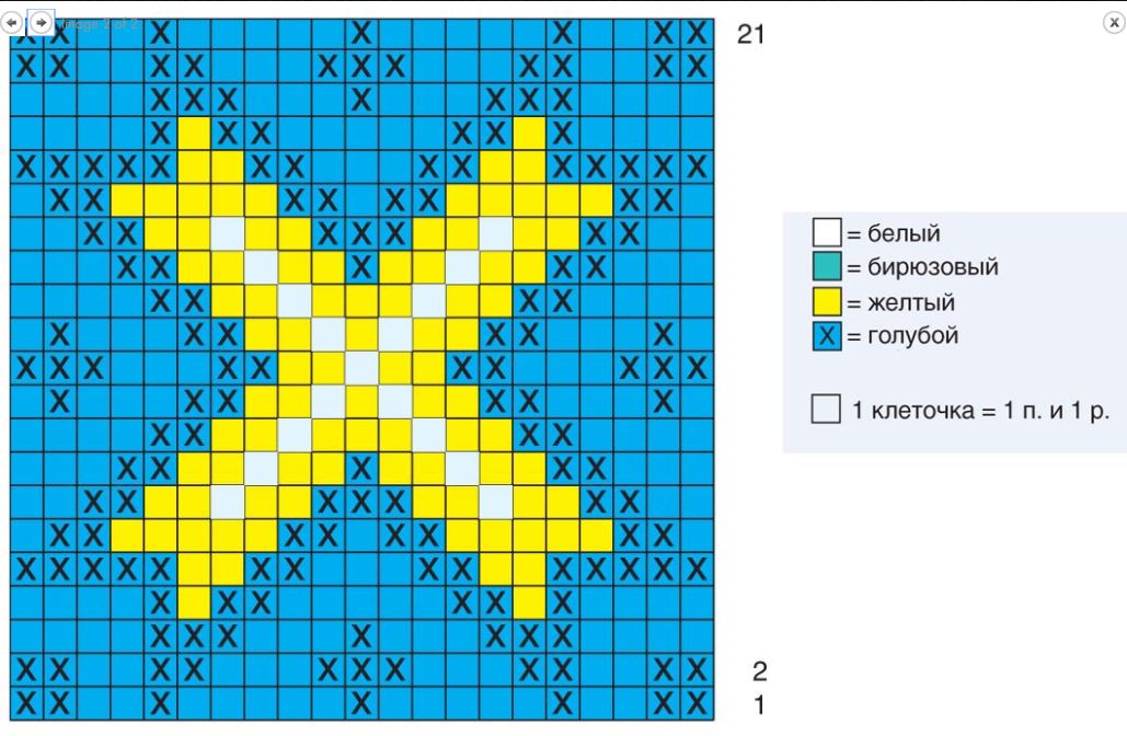 Для выполнения этого рисунка цвета пряжи выбирайте самостоятельно, ориентируясь по цветовой гамме изделия, для которого будете использовать этот узор.