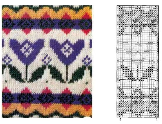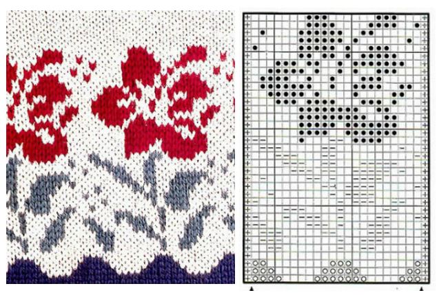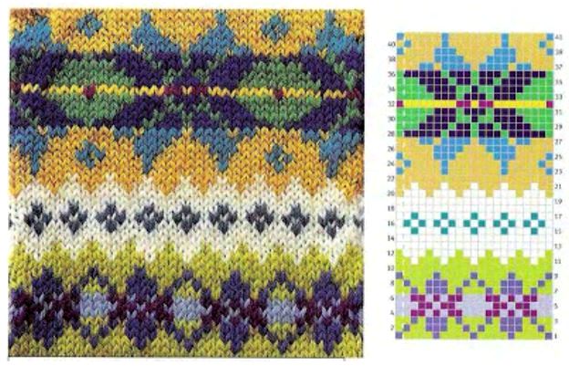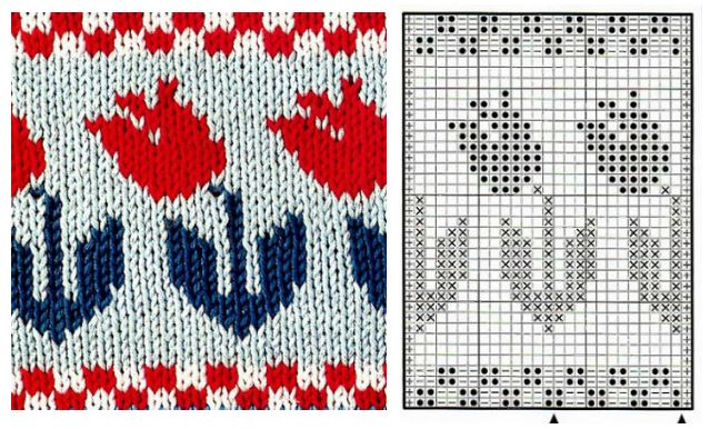Очень яркий, оптимистичный узор. Подойдет для свитеров, пуловеров, рукавичек и шапок.