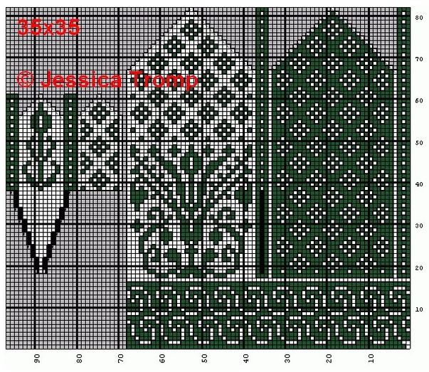 Нерабочая нить свободно протягивается по изнаночн. стороне. В высоту вывязываем однократно с 1-го р. по 30-ый р.