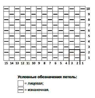 - 3р.: * (1 н. + 1 петл.) провязываем в 1 лицев., 1 изнаночн.* – от * и до * делаем на всех петлях;