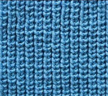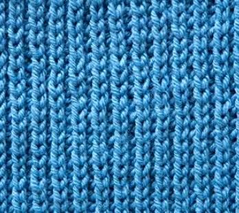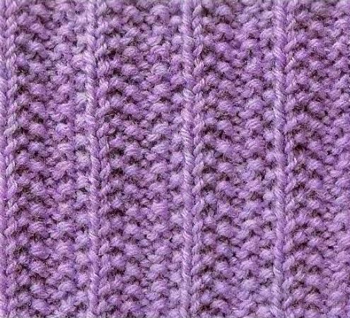 Этот рисунок является представителем патентных узоров. В отличие от предыдущих вариантов, имеет лицевую и изнаночную сторону. Причем деление это очень условное. Какую из сторон вы определите для себя лицевой – зависит только от ваших предпочтений. Одна сторона полотна выглядит как английская резинка, вторая – как жемчужный узорчик. Применяется рисунок для оформления выреза горловины, манжетов рукавов, нижнего края изделий.